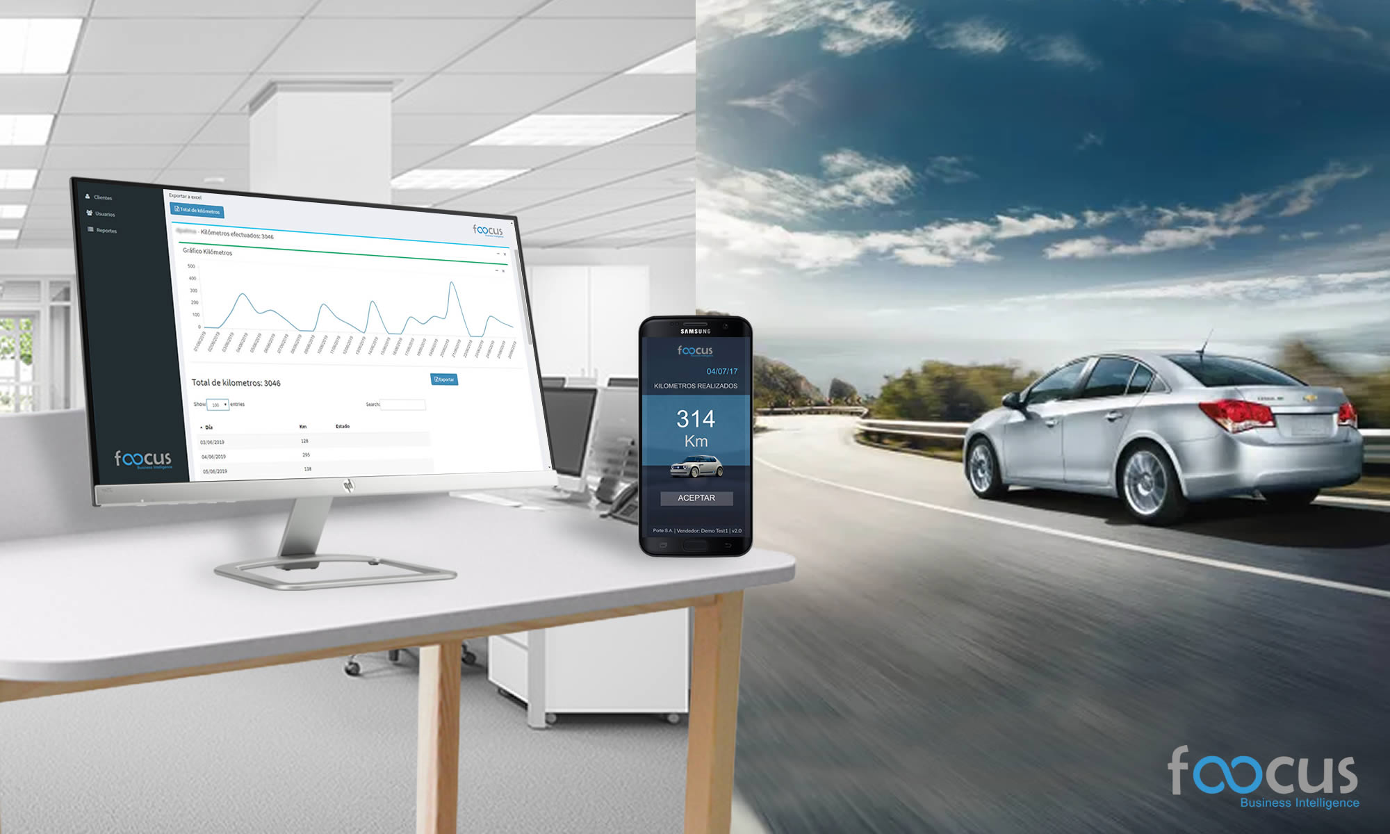 Calculo automático de Kilómetros realizados Foocus calcula de manera automática los kilómetros recorridos. Desde el panel de control se puede acceder a periodos específicos y emitir reportes mensuales.